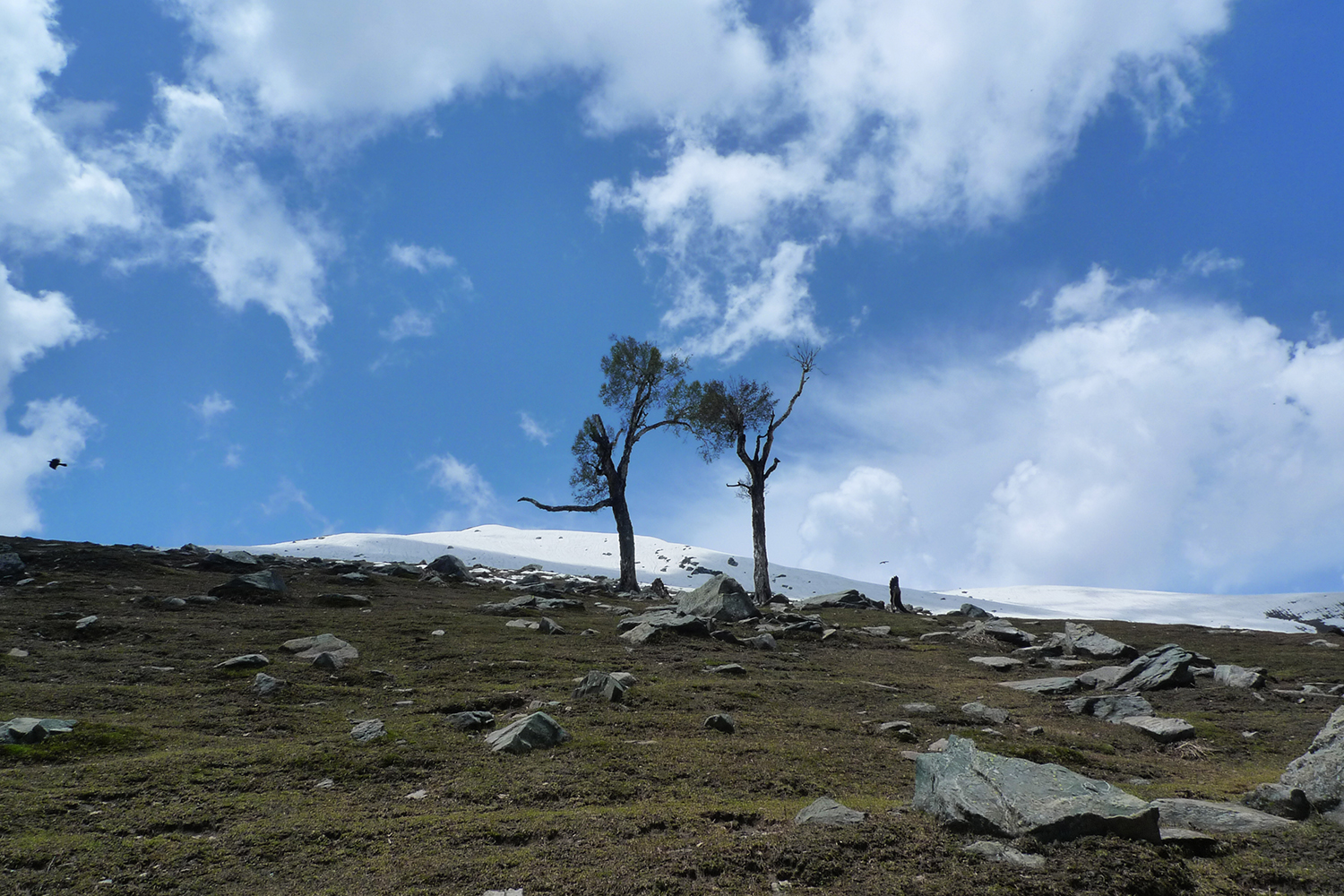 通常4天3夜的Gangabal湖健行,第一天大多在Naranag紮營,第二天才開始往上爬。這次顧及多變的氣候,第一天我們便上到Bushire Top,至少最難的部分已經結束。一個禮拜前,我爬得氣喘吁吁,這一次快多了。有訓練還是有差。