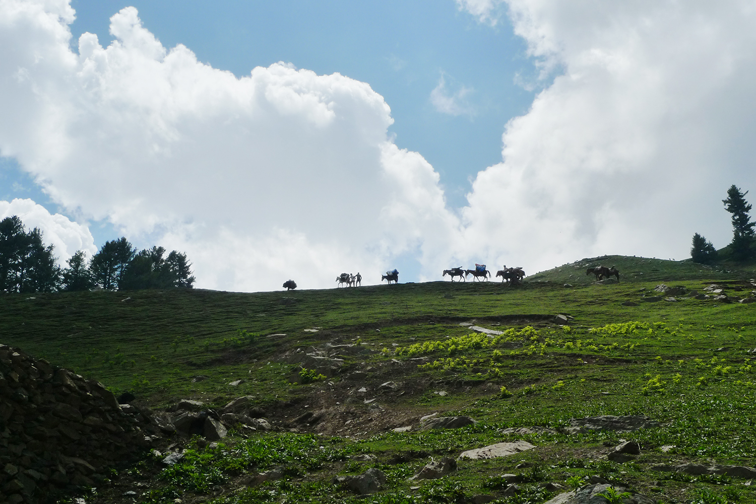 從Bushire Top下山,我們遇上整家遷移上山,準備數月放牧生活的牧羊人和他們的羊群,五百多隻羊咩咩聲此起彼落,一路遠從數百公里外的Jammu徒步遷徙到Gangabal湖區域,甚至Gadsar湖附近。6-9月是羊群飽餐的季節。