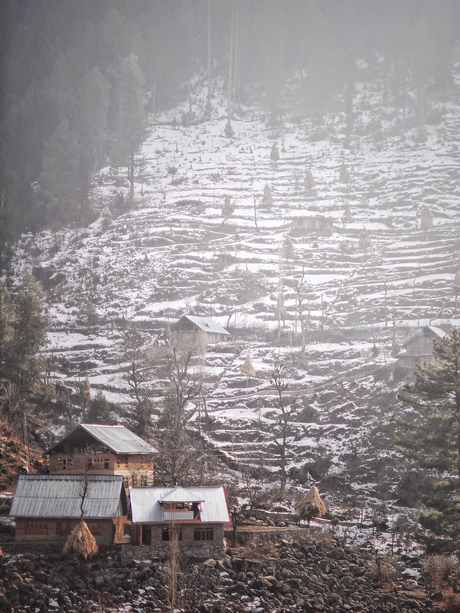 跨年那天我和阿飛特地前往Naranag準備為Sherni Project尋找未來落腳的家,在跟著我們幾名馬夫身後爬上跑下查訪了好幾個地方後才知道,原來有不少外地人早早就看準村落未來的商機買了好些地等著待價而沽,甚至有幾處已經開始大興土木。這些外地人並非外國人或印度人,而是像阿飛這樣非Naranag居民的喀什米爾人。