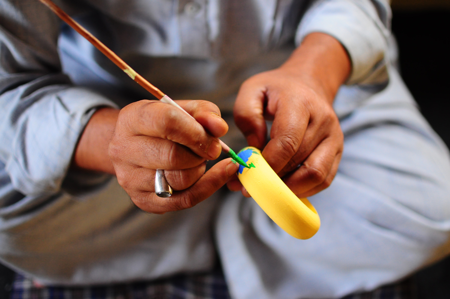 紙漿工藝品Paper Mache,是喀什米爾最著名的手工藝之一。這些手藝精湛的師傅,薪水比一般靠雙手勞動的人還高許多,有些還被邀請到歐洲示範教學。如果可以在喀什米爾工作,彩繪師傅將會是我在這裡最想從事的職業。